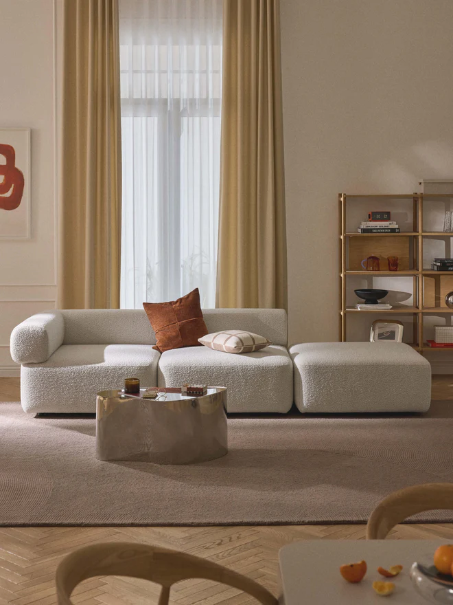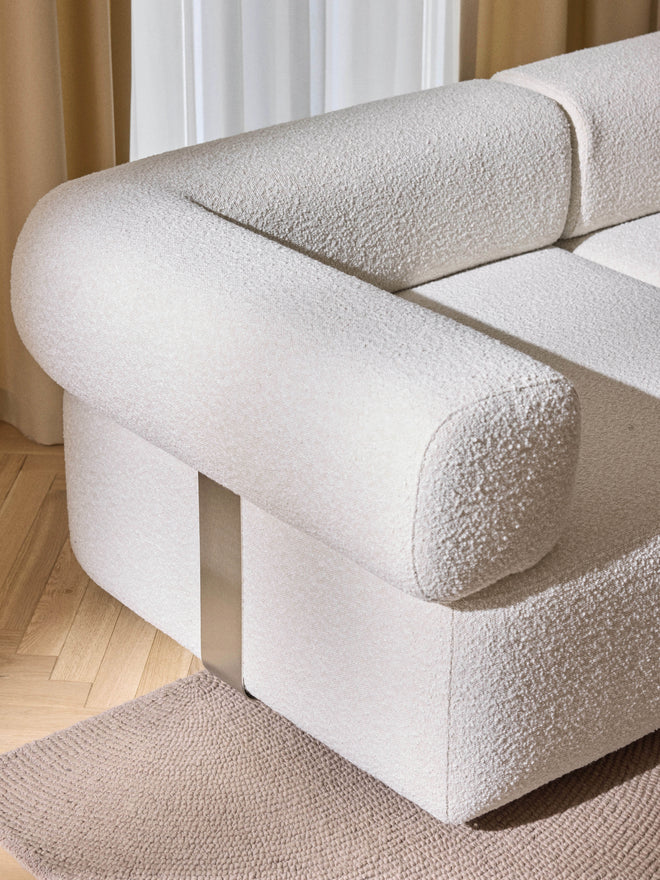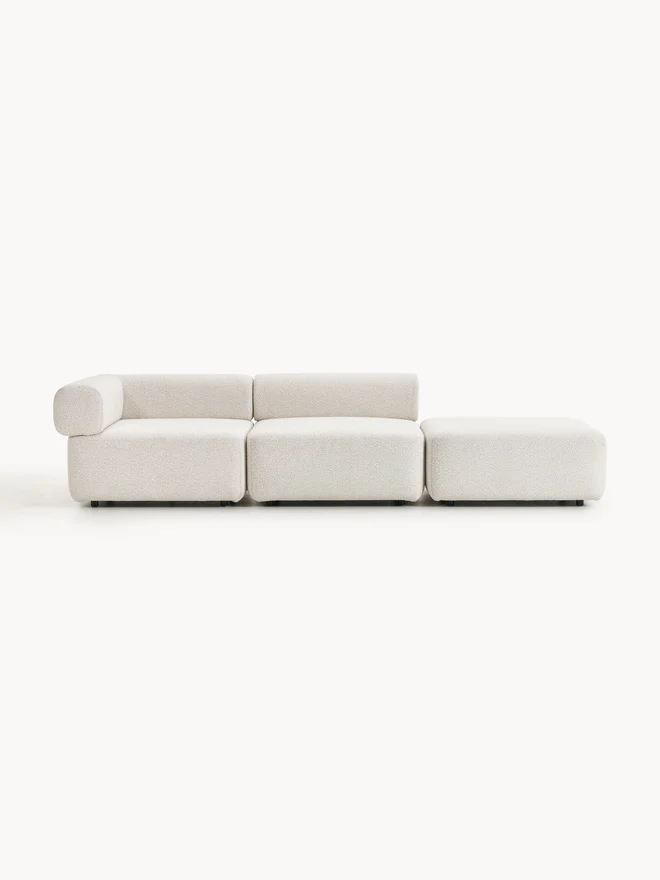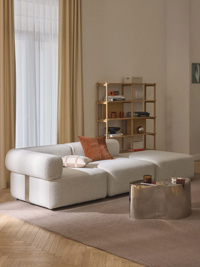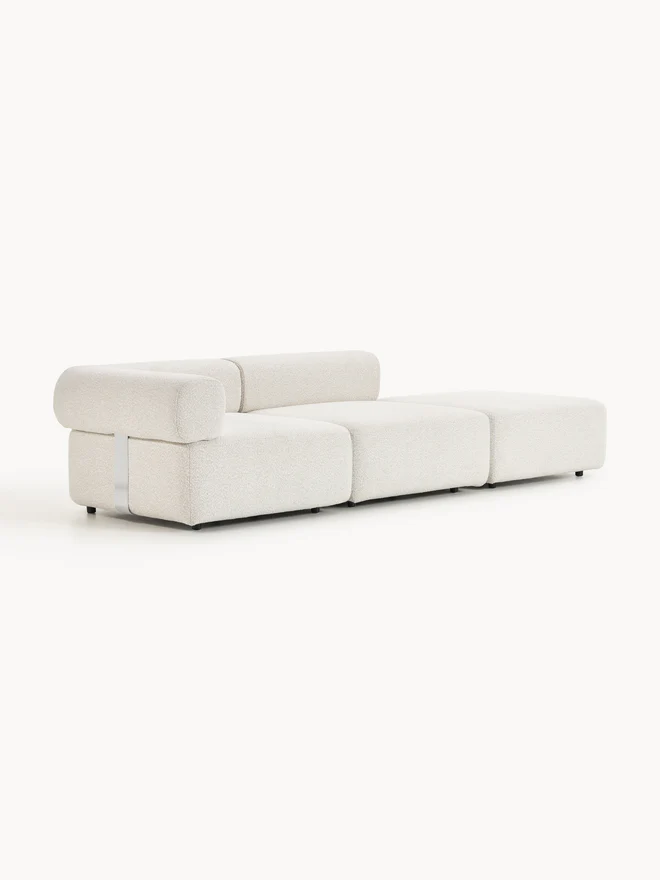 ANTON, the ultimate modular sofa for your living space! With its various geometrically shaped modules, it offers endless possibilities to adapt to your living situation. The brushed metal elements lend the design a subtle touch of sophistication. Modular perfection – that’s ANTON! Create your own individual ANTON by combining individual modules or expanding your existing ANTON sofa. You can find all ANTON modules in our product range. Thanks to an easy click system, ANTON can be expanded as desired. The armrest is on the right-hand side when facing the ottoman. Made in UAE