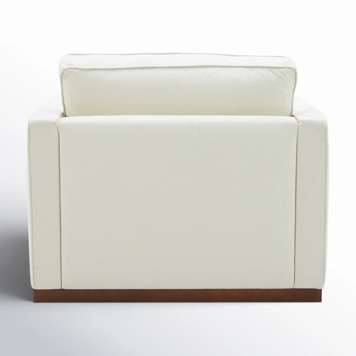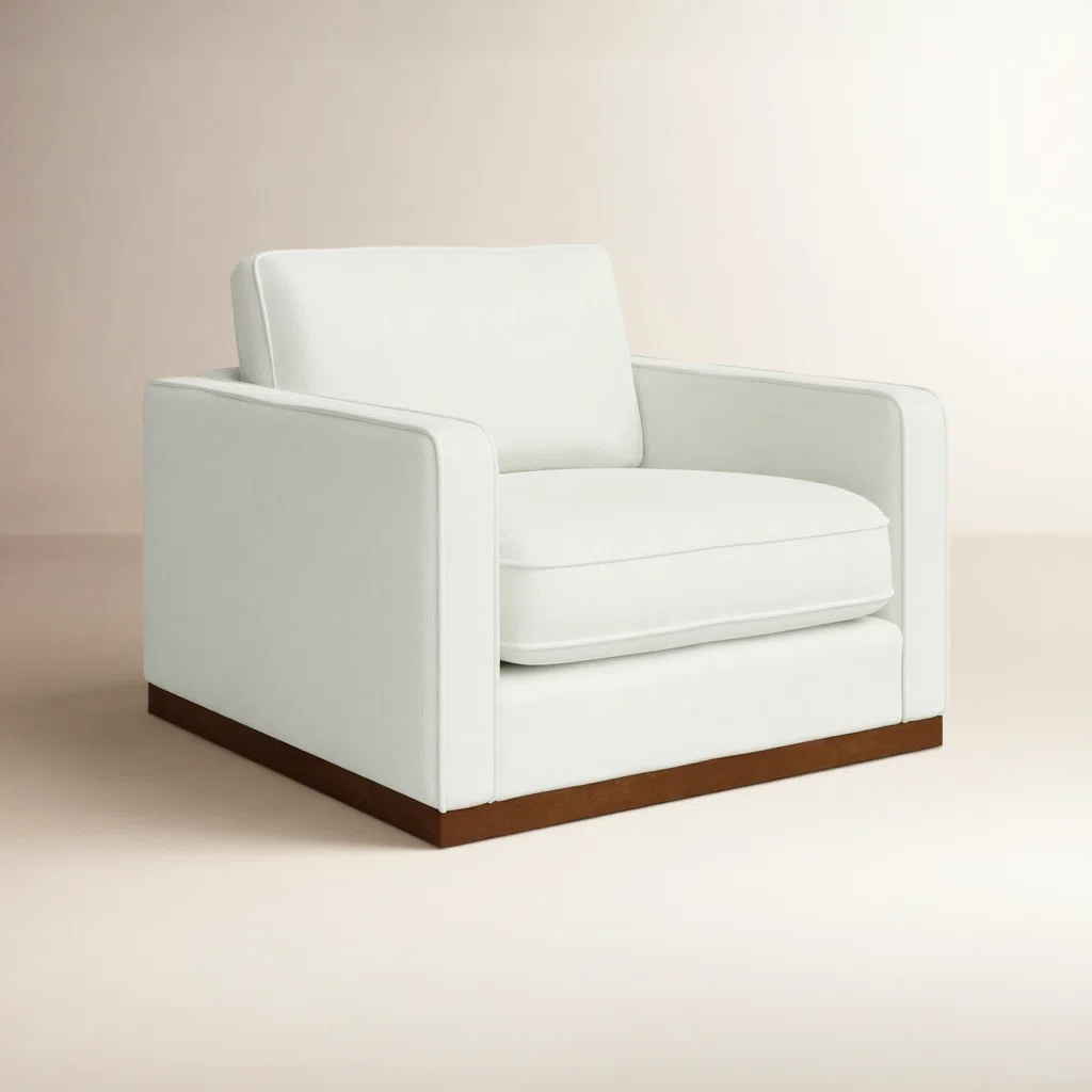 The Arden Armchair brings timeless comfort and understated elegance to your living room or bedroom. The sturdy blend of solid pine and engineered wood crafts its frame, reinforced by sinuous springs and web suspension for lasting support. Wrapped in soft cotton upholstery, the chair features plush foam and feather-blend cushions that invite you to sink in and relax. Dark brown solid wood legs and a pillow back design add a classic touch, while reversible cushions and removable covers make maintenance effortless. Designed for both style and practicality, Arden is a versatile piece that complements modern and transitional interiors alike.