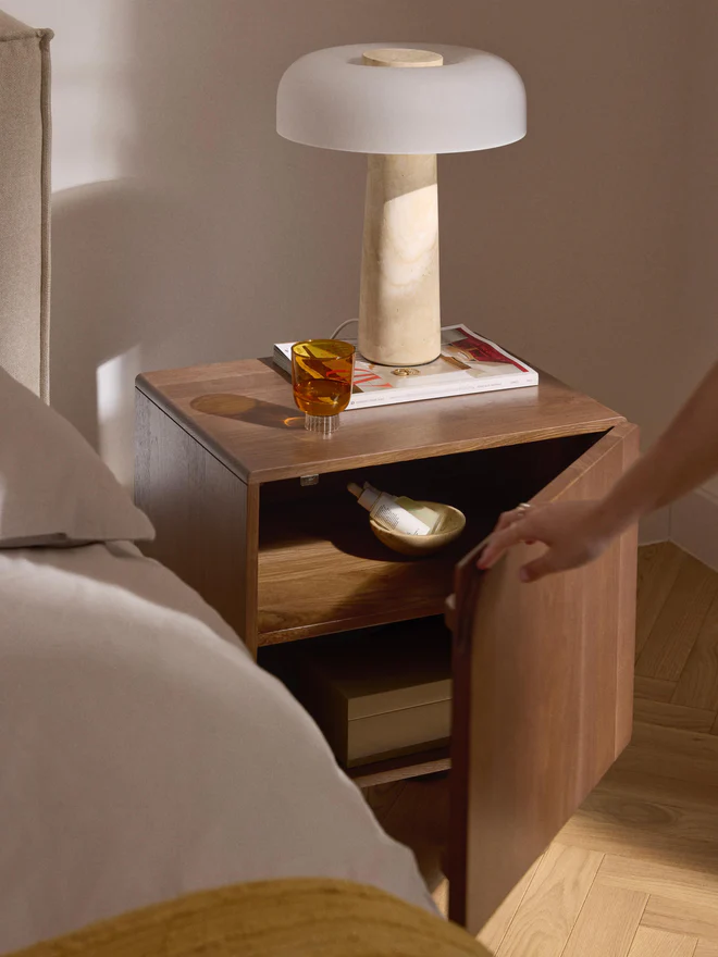 CADI is the result of a playful combination of clean lines, geometric shapes, and soft details – unique and fun! The chunky legs reflect current trends and make this series a cool addition to the Westwing Collection! The product features two compartments. The door has a soft-close mechanism, ensuring silent closing.