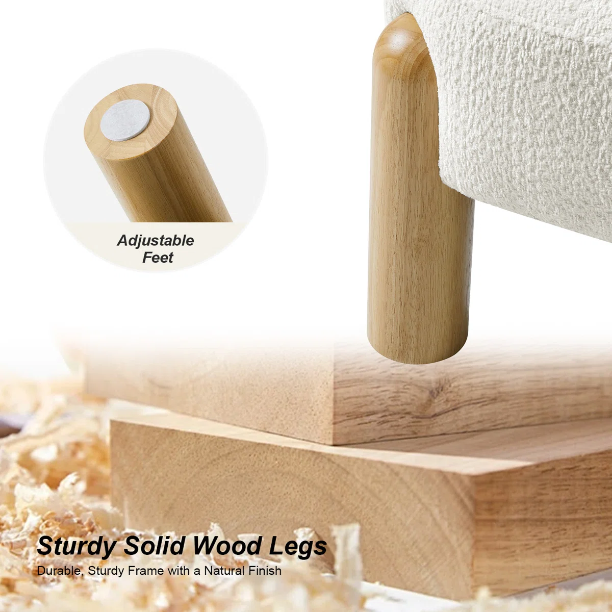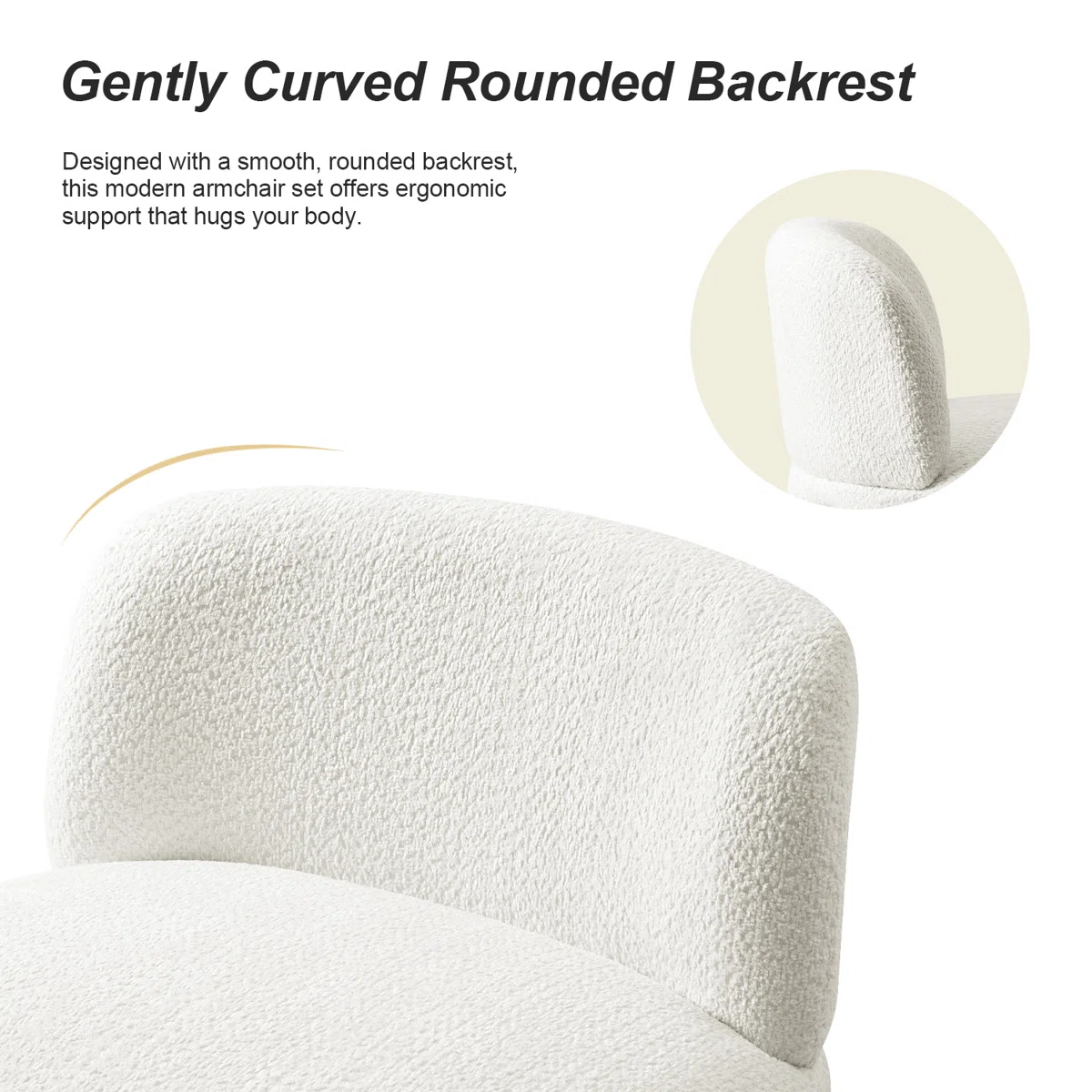 - Textured Bouclé Upholstery: Adds softness and modern appeal.
