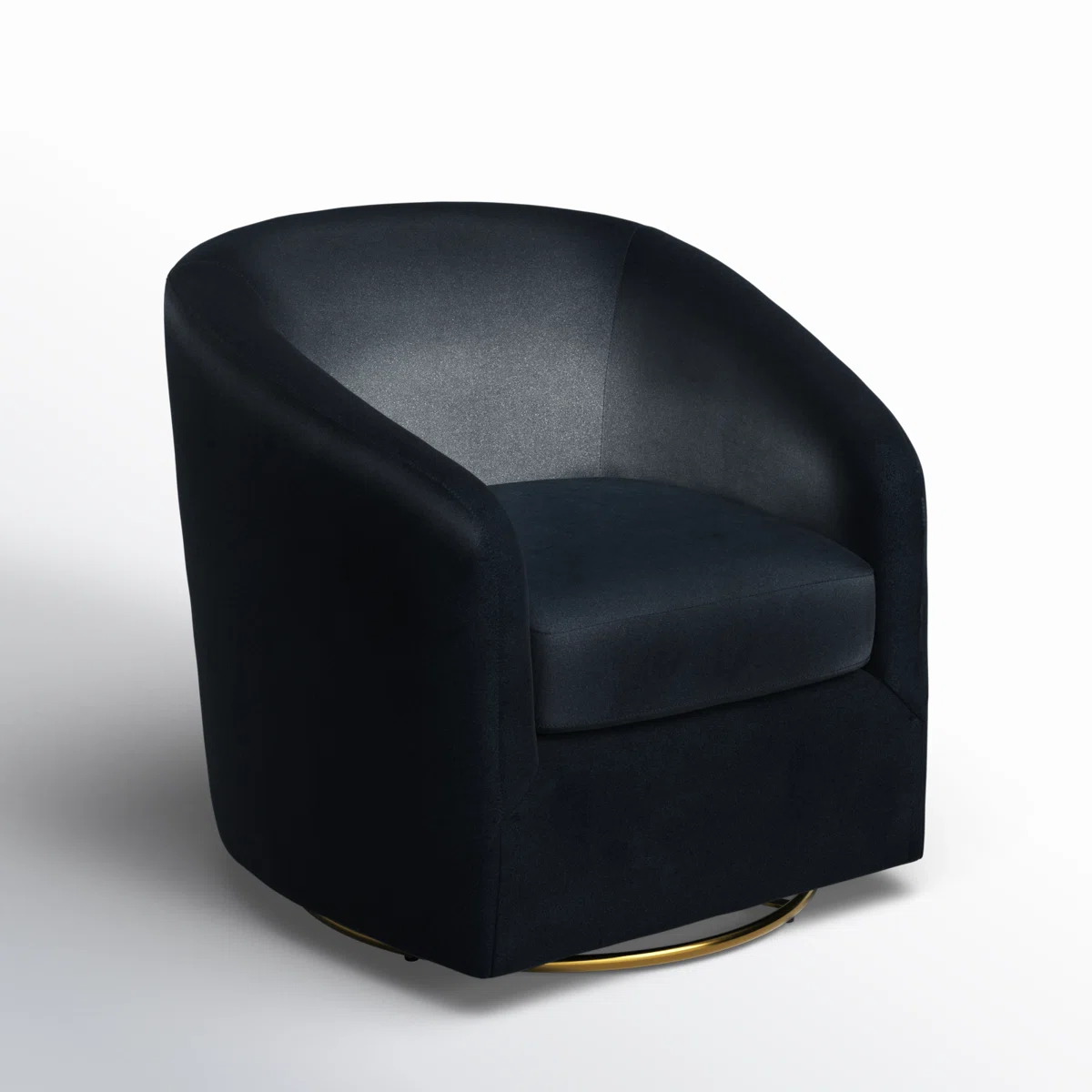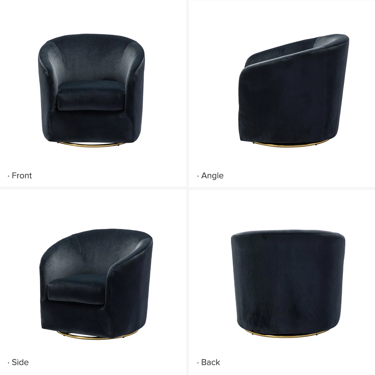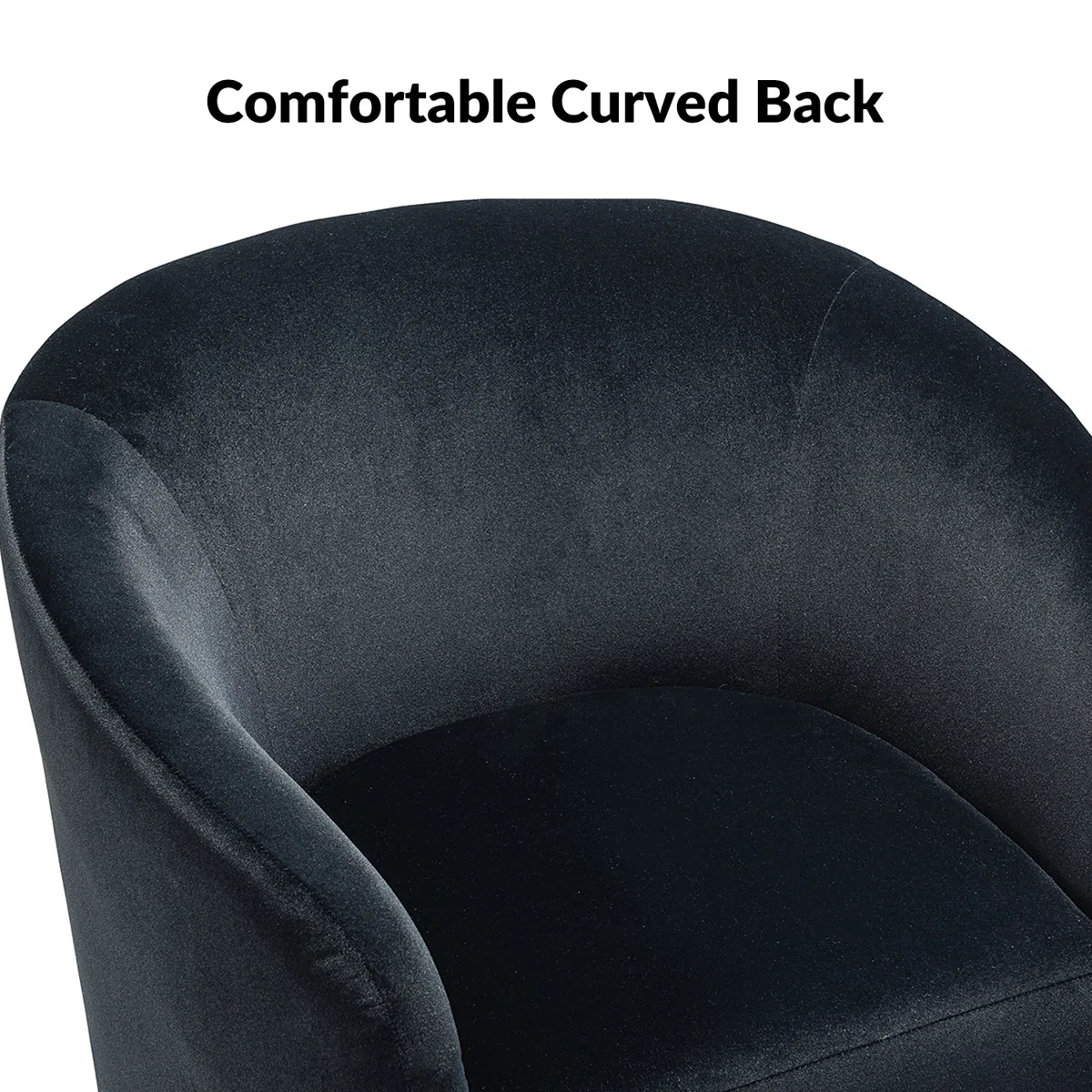 The Holden Luxe Velvet Swivel Chair combines timeless barrel-chair styling with modern functionality. Upholstered in rich velvet, it offers a soft, inviting surface while foam cushioning and sinuous springs provide balanced support. The kiln-dried wood frame ensures durability, and the enclosed tight back with fixed arms creates a cozy, structured feel. A sleek metal round base allows smooth 360° swivel motion, making this chair a versatile addition to bedrooms, living rooms, or reading nooks. Elegant yet practical, it’s designed for both comfort and sophistication.