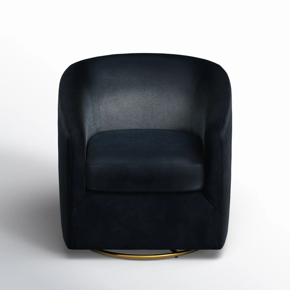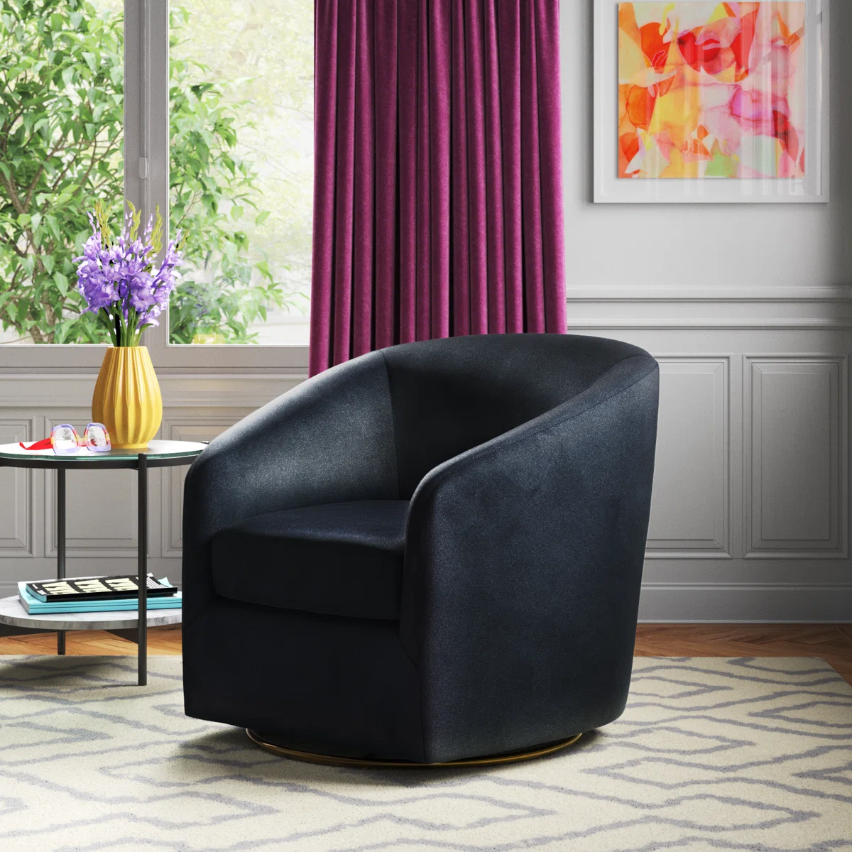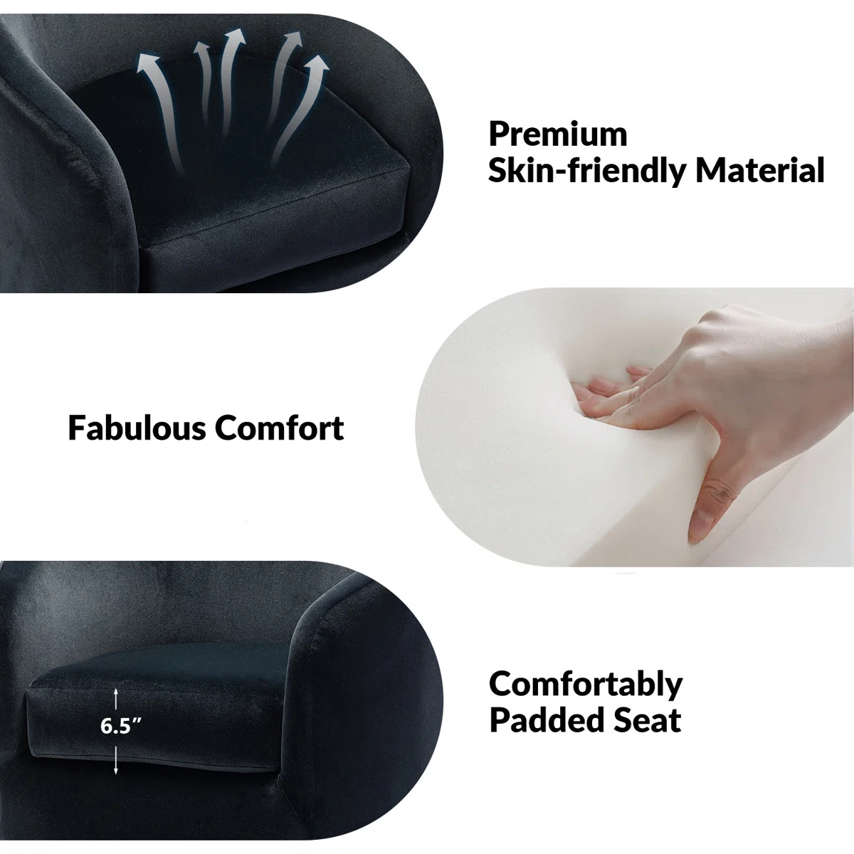 The Holden Luxe Velvet Swivel Chair combines timeless barrel-chair styling with modern functionality. Upholstered in rich velvet, it offers a soft, inviting surface while foam cushioning and sinuous springs provide balanced support. The kiln-dried wood frame ensures durability, and the enclosed tight back with fixed arms creates a cozy, structured feel. A sleek metal round base allows smooth 360° swivel motion, making this chair a versatile addition to bedrooms, living rooms, or reading nooks. Elegant yet practical, it’s designed for both comfort and sophistication.