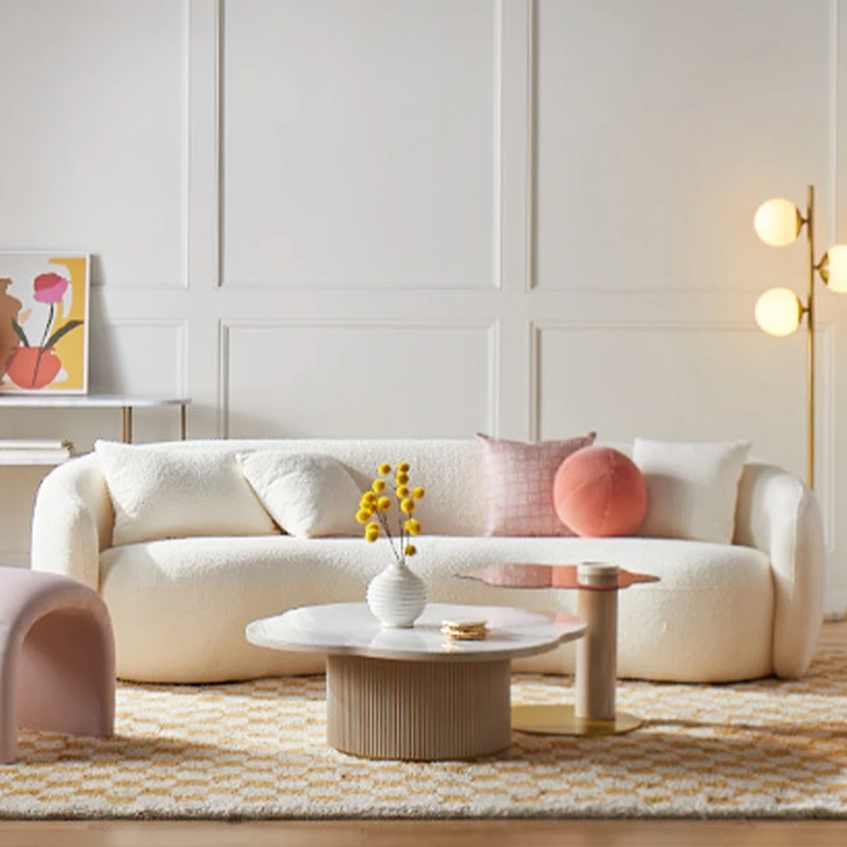 Premium Bouclé Upholstery – Soft, textured fabric for a cozy and sophisticated look