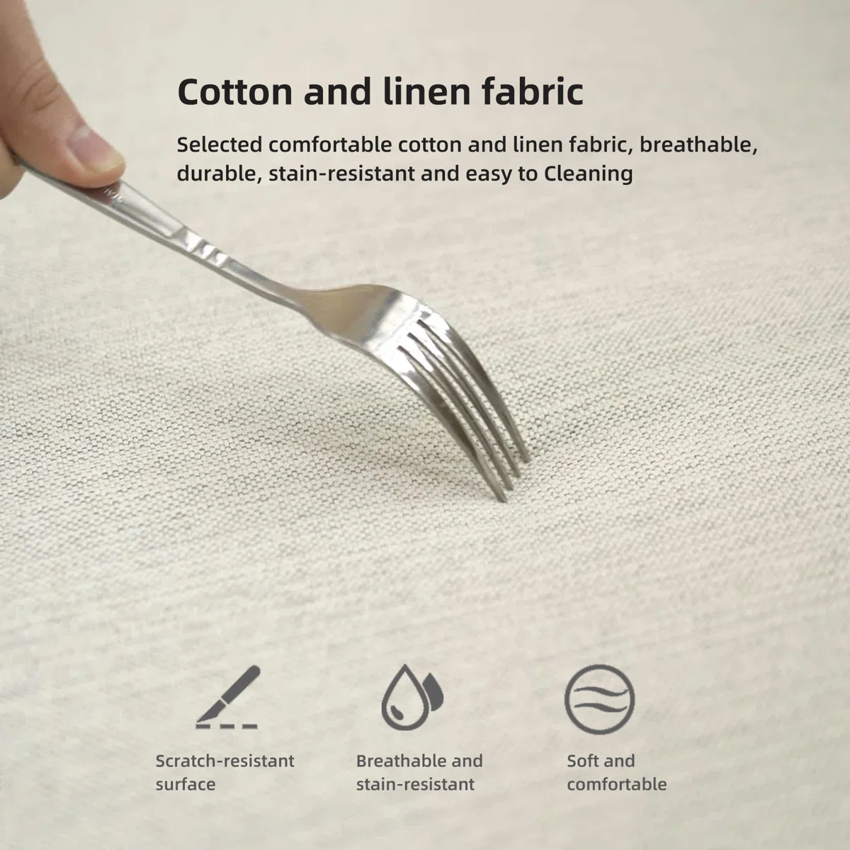 Premium Cotton-Linen Upholstery – Breathable, soft, and naturally comfortable fabric