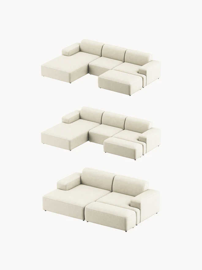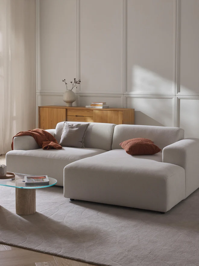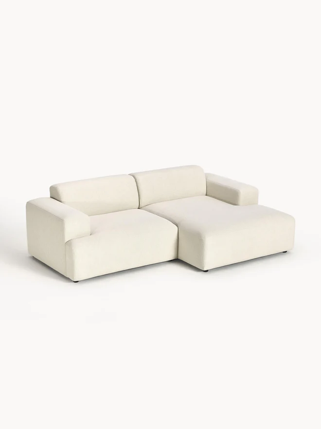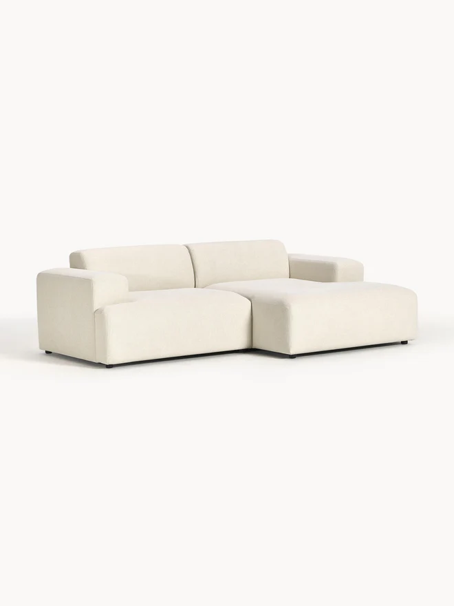 With the lounge favorite MELVA, the Westwing Collection design team has perfectly captured the cloud-like sofa trend. How? With rounded edges, compact proportions, and cool fabric finishes like trendy corduroy. Thanks to wide armrests and a deep seat, it’s wonderfully relaxing and lounging. Add the matching MELVA ottoman, and the sofa transforms into a spacious lounge area. A must-have for anyone who loves comfort! With the lounge favorite MELVA, the Westwing Collection design team has perfectly captured the cloud-like sofa trend. How? With rounded edges, compact dimensions, and cool fabric finishes like trendy corduroy. Thanks to wide armrests and a deep seat, it’s wonderfully relaxing – and with the matching MELVA ottoman, the sofa transforms into a spacious lounge area. A must-have for anyone who loves ultimate comfort! – Lounge sofa in various versions with an extra-large seating area and wide armrests – Robust design with internal construction made of FSC®-certified wood – Made in Europe. When you are standing frontally in front of the sofa, the corner section is on the right side.