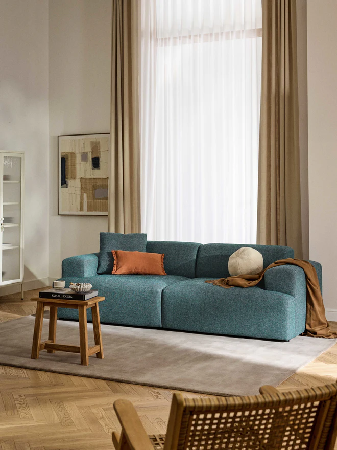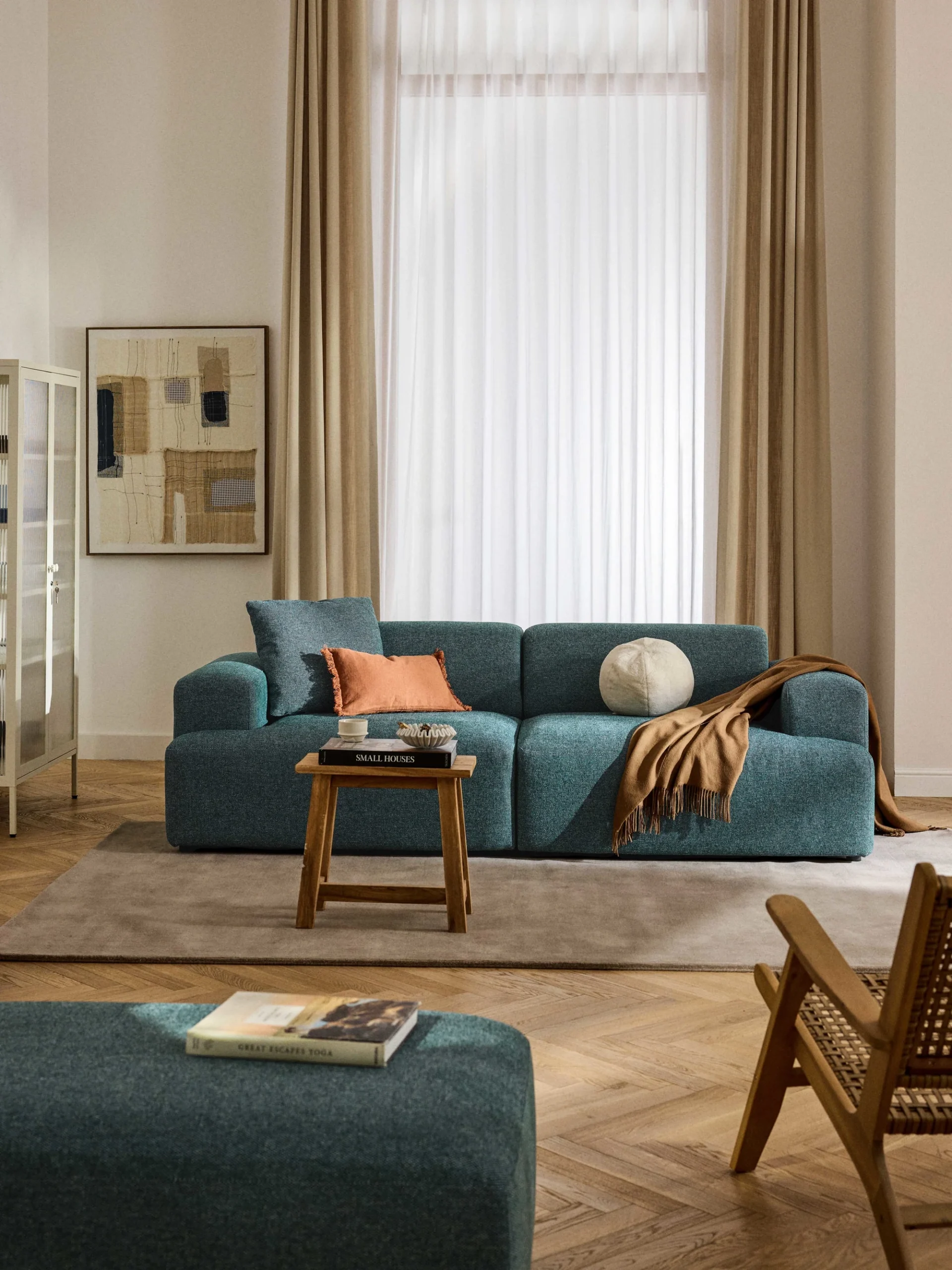 With the lounge favorite MELVA, the Westwing Collection design team has perfectly captured the cloud-like sofa trend. How? With rounded edges, compact proportions, and cool fabric finishes like trendy corduroy. Thanks to wide armrests and a deep seat, it’s wonderfully relaxing and lounging. Add the matching MELVA ottoman to transform the sofa into a spacious lounge area. A must-have for anyone who loves comfort! With the lounge favorite MELVA, our Westwing Collection design team has perfectly captured the cloud-like sofa trend. How? With rounded edges, compact dimensions, and cool fabric finishes like trendy corduroy. Thanks to the various widths and depths available, you can extend your MELVA sofa with this ottoman as desired. A must-have for anyone who loves ultimate comfort! – Lounge sofa in various versions with an extra-large seat and wide armrests – Robust design with an internal frame made of FSC®-certified wood – Highly durable and easy-care fabric, available in many different fabrics and colors – Made in UAE
