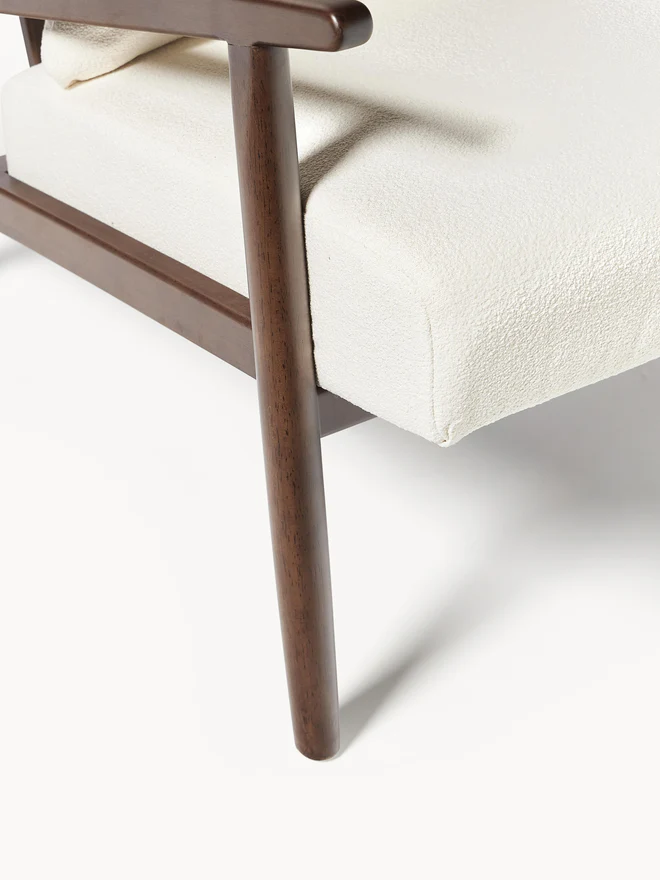 Upholstery: 100% polyester. Weave: Bouclé. The high-quality cover is suitable for intensive daily use with a Martindale test rating of 20,000 abrasion cycles. Padding: PU foam. Density: 24 kg/m³. Feet, frame: Rubberwood, lacquered. Base: Plywood. This product is made from sustainably sourced, FSC®-certified wood.