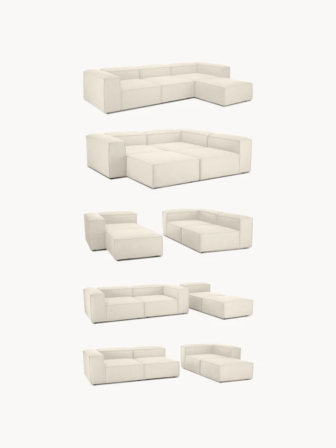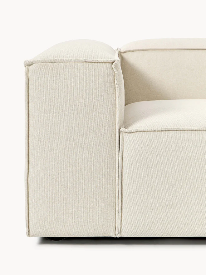 Our modular sofa series LENNON, with its various sizes and elements, is the perfect haven for cozy moments at home. Its signature features—low armrests and backrests, as well as its soft, deep seat—are ideal for lounging and relaxing. The solid pine frame is FSC-certified and built to last, while sewn-in foam cushions with pocket springs guarantee its characteristic shape. Thanks to an easy click system, it can be expanded as desired. Discover other products in our range that perfectly complement LENNON: The LANA console not only offers additional storage space but is also a decorative highlight that fits the LENNON dimensions perfectly. The LENNON ottoman with a wooden top can be used either as a coffee table or as a connecting element for the sofa—for a stylish look, storage, and practical use. And, of course, the perfect finishing touch: sofa cushions in all LENNON fabrics and colors for the perfect look—whether tone-on-tone or patterned and combined. Our modular sofa series LENNON, with its various sizes and elements, is the perfect haven for cozy moments at home. Its signature features—low armrests and backrest, along with its soft, deep seat—make it perfect for lounging and relaxing. The solid pine frame is FSC-certified and built to last, while sewn-in foam cushions with pocket springs guarantee its characteristic shape. Thanks to an easy click system, it can be expanded as desired. Explore our range of perfectly coordinated products that complement LENNON: The LANA console not only offers extra storage space but is also a decorative highlight that fits LENNON’s dimensions perfectly. The LENNON ottoman with a wooden shelf can be used flexibly as a coffee table or as an intermediate element within the sofa—for a stylish look, surface area, and practical storage. And don’t forget the perfect complement: sofa cushions in all LENNON fabrics and colors for the perfect look—either uniformly or in a mix-and-match style. – Lounge sofa with an extra-large seating area – Modular: Can be completely combined and expanded as desired using an easy click system – Highly durable and easy-care woven fabric, available in many color variations – Made in UAE