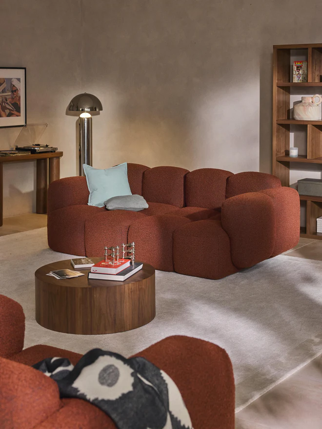 May we introduce TAYLA – the sofa with a unique design that combines modern elegance with exceptional comfort. The round, upholstered bubble elements make TAYLA a real eye-catcher and lend your living room an inviting and stylish atmosphere. The soft back cushions invite you to lean back and relax – whether reading, watching TV, or simply unwinding. Available in a variety of colors, TAYLA blends seamlessly into any home. May we introduce TAYLA – the sofa with a unique design that combines modern elegance with exceptional comfort. The round, upholstered bubble elements make TAYLA a real eye-catcher and lend your living room an inviting and stylish atmosphere. The soft backrests invite you to lean back and relax – whether reading, watching TV, or simply unwinding. Available in various colors, TAYLA blends perfectly into any home. Create your own individual TAYLA sofa by extending your existing sofa. You can find the modules in our product range.