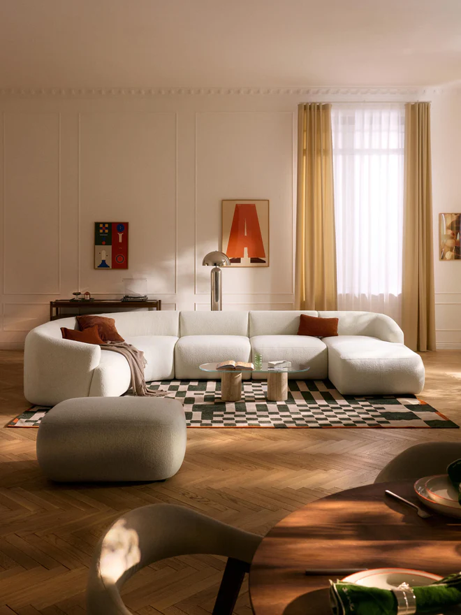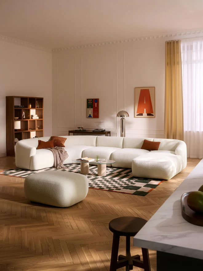 The dream sofa for all interior design enthusiasts! SOFIA impresses visually with its rounded, organic shapes – a trend that’s here to stay. Thanks to the modular composition of its various elements, the sofa is as versatile as everyday life and offers a suitable and beautiful solution for every purpose. The design is complemented by our SOFIA cushions, available in all SOFIA fabrics and colors, for the perfect look – either uniform or in a mix-and-match style. The cushion shapes are specially designed to match the SOFIA design and therefore fit the dimensions of the SOFIA modules perfectly. Form and function are united for your new favorite spot in the living room! When you stand facing the sofa, the corner section is on the left. Thanks to an easy click system, SOFIA can be expanded as desired.Made in UAE