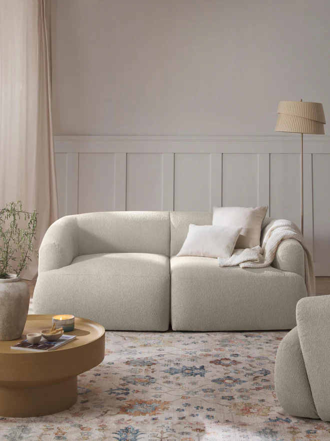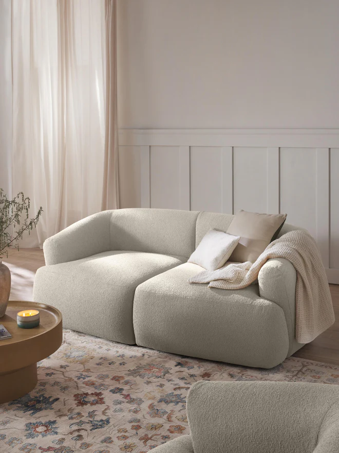 The dream sofa for all interior design enthusiasts! SOFIA captivates with its rounded, organic shapes – a trend that’s here to stay. Thanks to the modular composition of its various elements, the sofa is as versatile as everyday life and offers a suitable and beautiful solution for every purpose. The design is complemented by our SOFIA cushions, available in all SOFIA fabrics and colors, for the perfect look – either completely uniform or in a mix-and-match style. The cushion shapes are specially designed to perfectly match the dimensions of the SOFIA modules. Form and function unite for your new favorite spot in the living room! SOFIA carries the “Blue Angel” ecolabel – the German government’s environmental label for low-emission and health-conscious furniture. It reduces environmental impact throughout the entire life cycle and contributes to a healthy indoor climate through emission controls and compliance with strict chemical regulations. So you can rely on the comfort of SOFIA. The dream sofa for all interior design enthusiasts! Visually, SOFIA impresses with its rounded, organic shapes – a trend that’s here to stay. Thanks to its modular design, the sofa is as versatile as everyday life, offering a suitable and beautiful solution for every purpose. The design is complemented by our SOFIA cushions, available in all SOFIA fabrics and colors, for the perfect look – either uniform or in a mix-and-match style. The cushion shapes are specially designed to match the SOFIA design and therefore fit the dimensions of the SOFIA modules perfectly. Form and function unite for your new favorite spot in the living room! SOFIA has been awarded the “Blue Angel” ecolabel – the German Federal Government’s environmental label for low-emission, health-friendly furniture. It ensures a reduced environmental impact throughout its entire life cycle and contributes to a safe and healthy living environment by controlling air emissions and adhering to strict chemical regulations. Thus, SOFIA offers comfort you can rely on. Thanks to an easy click system, SOFIA can be expanded as desired. Made in UAE