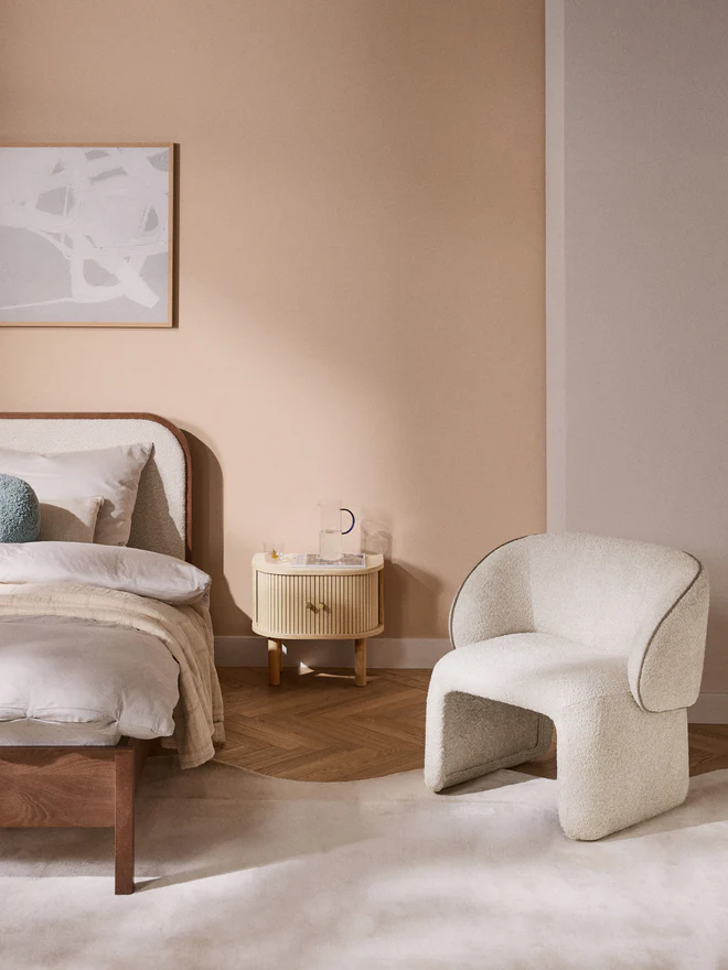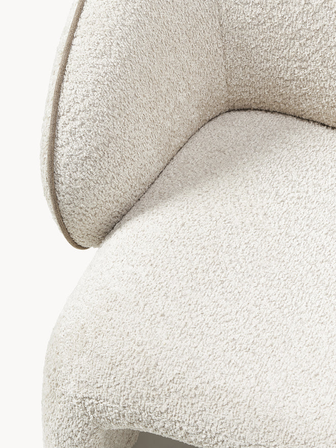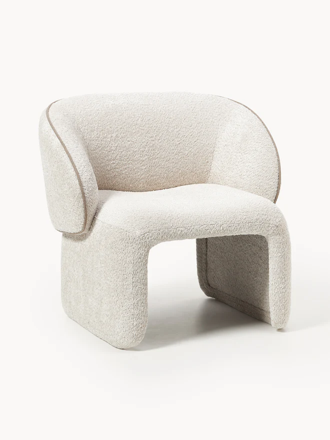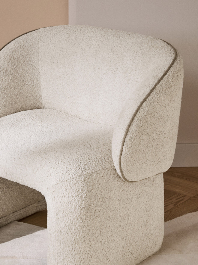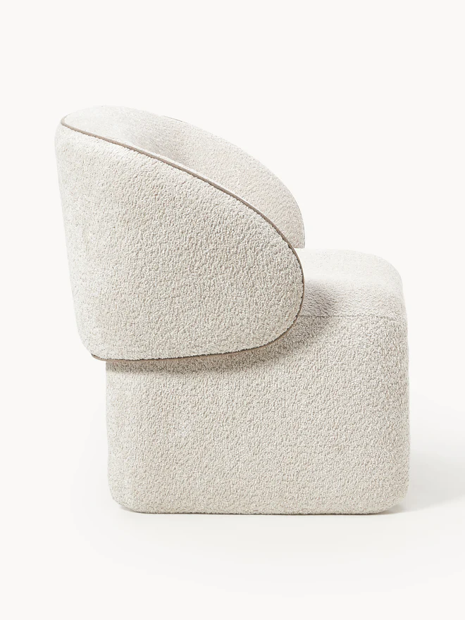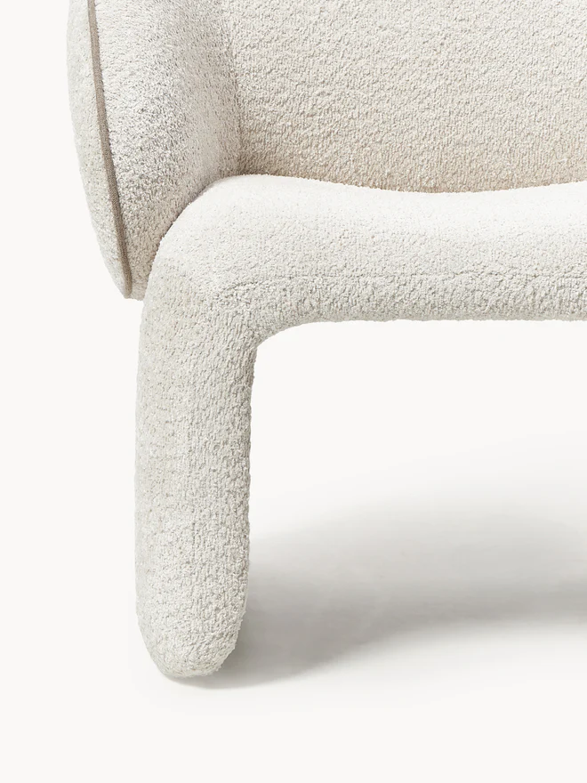 With its 70s charm, the PINA armchair invites you to relax – a must-have for your home. Its rounded, soft shape and striking, curved backrest create a unique look. Fully upholstered and featuring contrasting stitching, it perfectly combines elegance and comfort.