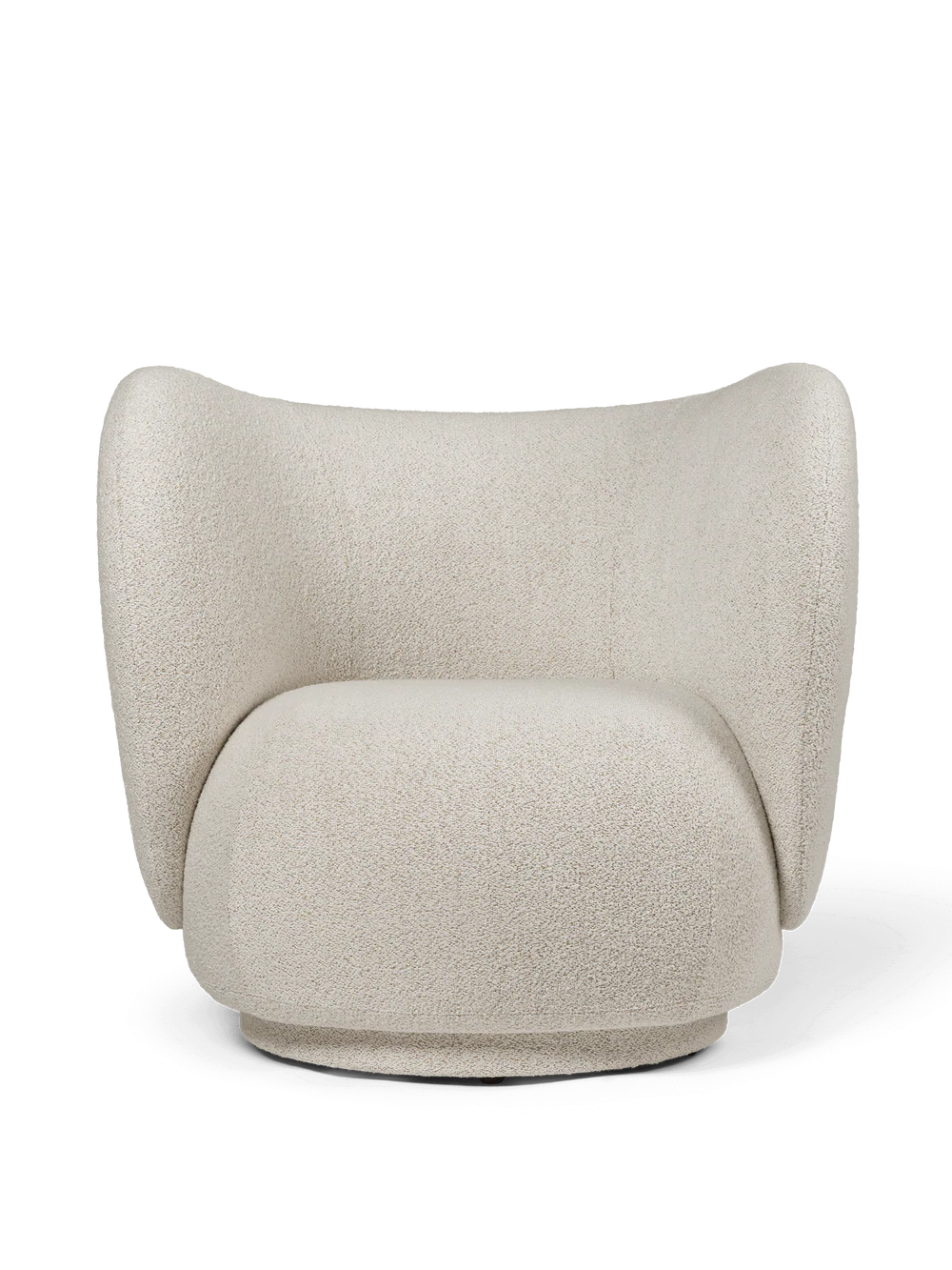 The Rico series welcomes curves and volumes into a classic design defined by soft lines and an embracing expression. Contrasting the sturdiness of the frame, the armchair has an upholstery of timeless, yet easeful bouclé fabric, which is woven of uneven yarn to attain the rich, loopy texture of the surface. The curvaceous nature of the series adds a modern union of comfort and elegance to any room and makes you feel drawn into its motherly embrace.