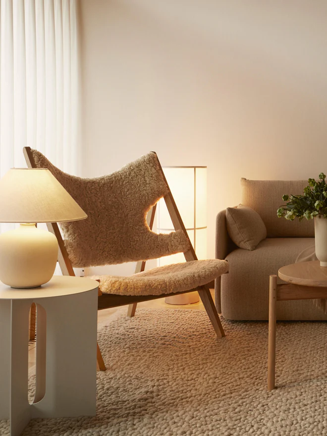 The lounge chair by Ib Kofod-Larsen, originally launched in a limited edition in 1951, has been reinterpreted with a frame made of natural oak, dark-stained oak, and walnut. This distinctive piece is crafted in Sweden by skilled artisans to create an unforgettable and timeless design of the highest quality. Made in UAE