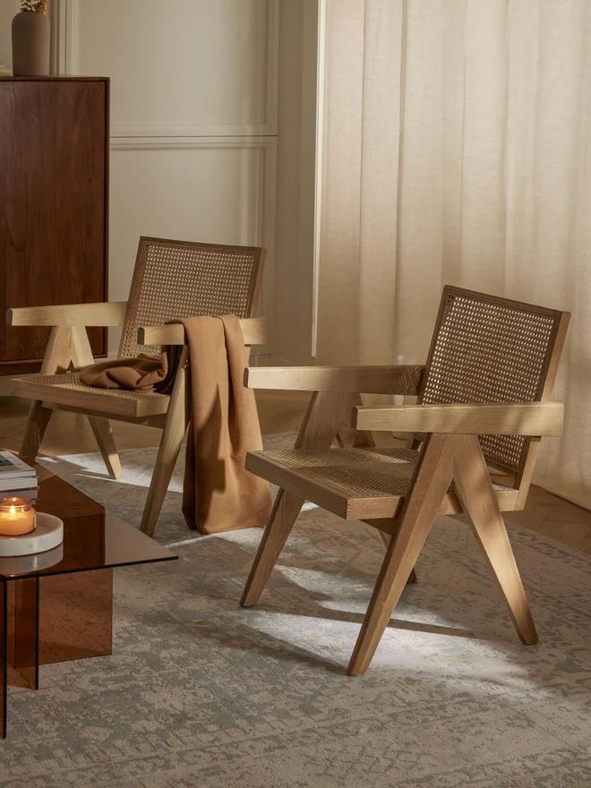 Everyone loves SISSI! Our collection is inspired by Pierre Jeanneret’s iconic office chair – a true design classic of the 1950s that blends modern design with traditional craftsmanship. SISSI also boasts a contemporary aesthetic, yet remains elegant and timeless – typical of the Westwing Collection. The highly recognizable form of SISSI enhances any space with its minimalist strength and expressive design. Available with Viennese cane webbing or comfortable upholstery, as an armchair, chair, bar stool, or bench – SISSI comes in a variety of versions.