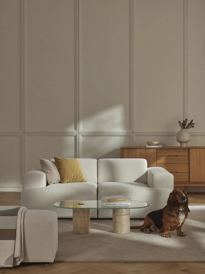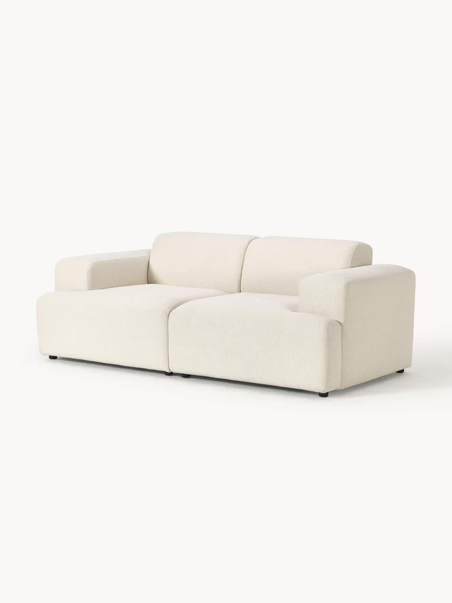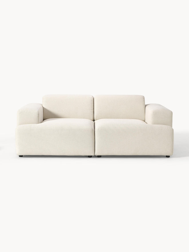 With the lounge favorite MELVA, the Westwing Collection design team has perfectly captured the cloud-like sofa trend. How? With rounded edges, compact proportions, and cool fabric finishes like trendy corduroy. Thanks to wide armrests and a deep seat, it’s wonderfully relaxing and lounging. Add the matching MELVA ottoman, and the sofa transforms into a spacious lounge area. A must-have for anyone who loves comfort! With the lounge favorite MELVA, the Westwing Collection design team has perfectly captured the cloud-like sofa trend. How? With rounded edges, compact dimensions, and cool fabric finishes like trendy corduroy. Thanks to wide armrests and a deep seat, it’s wonderfully relaxing – and with the matching MELVA ottoman, the sofa transforms into a spacious lounge area. A must-have for anyone who loves ultimate comfort! – Lounge sofa in various versions with an extra-large seat and wide armrests – Robust design with an internal frame made of FSC®-certified wood – Made in UAE