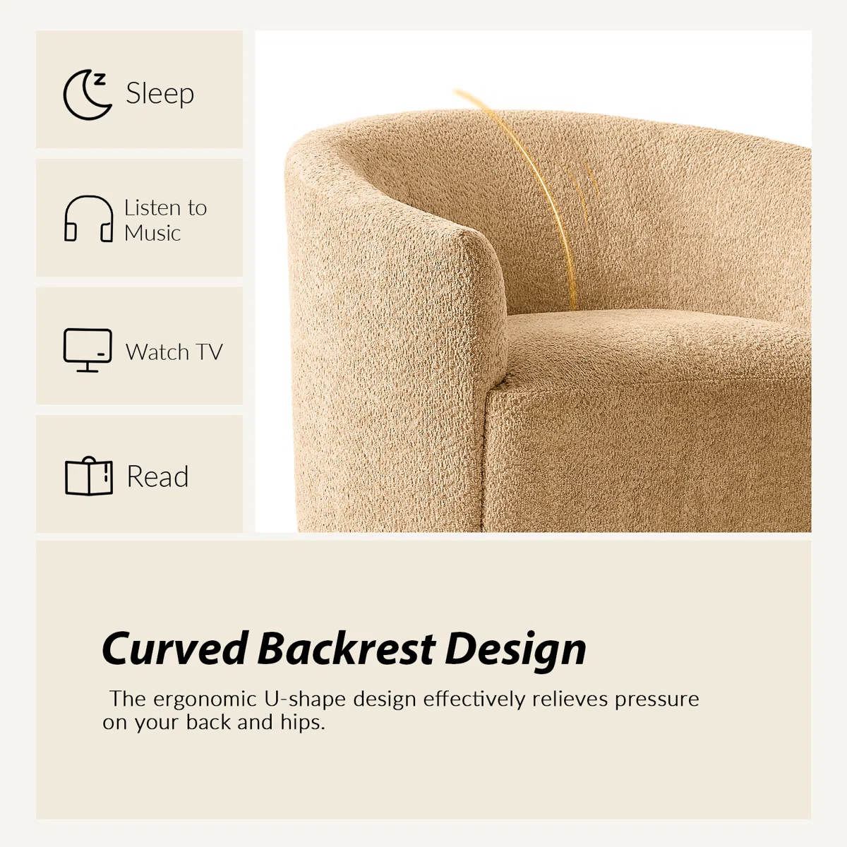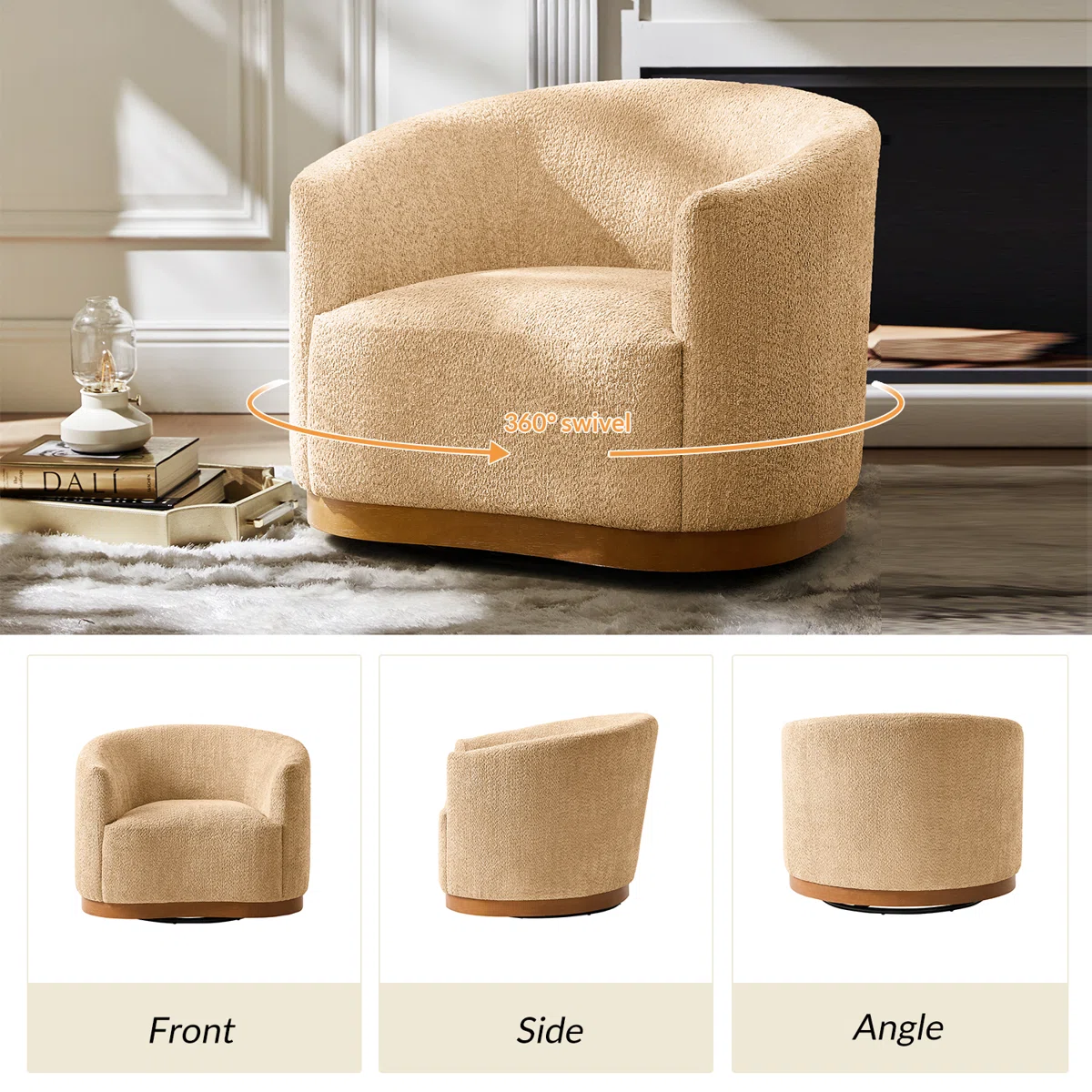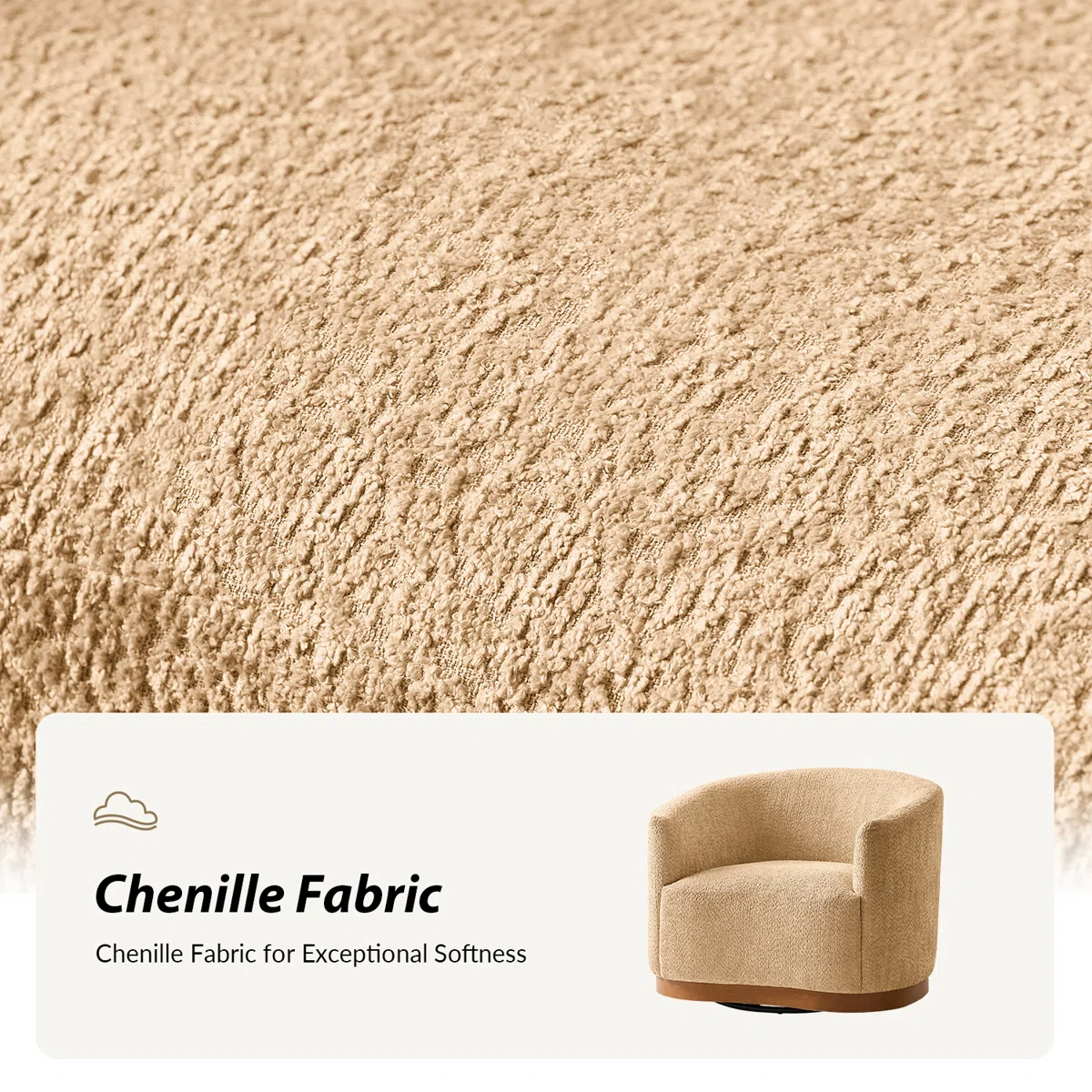 The Solara Chenille Swivel Barrel Chair is designed to deliver both elegance and ergonomic comfort. Upholstered in plush chenille fabric, it offers a luxuriously soft touch while the U-shaped backrest and contoured armrests provide supportive relaxation. A 360° swivel base ensures effortless movement, making it ideal for movie nights or casual lounging. Crafted with solid wood legs and a kiln-dried frame, this chair combines durability with modern sophistication. Fully assembled and ready to enjoy, the Solara is a versatile accent piece that enhances any living room, bedroom, or guest space.