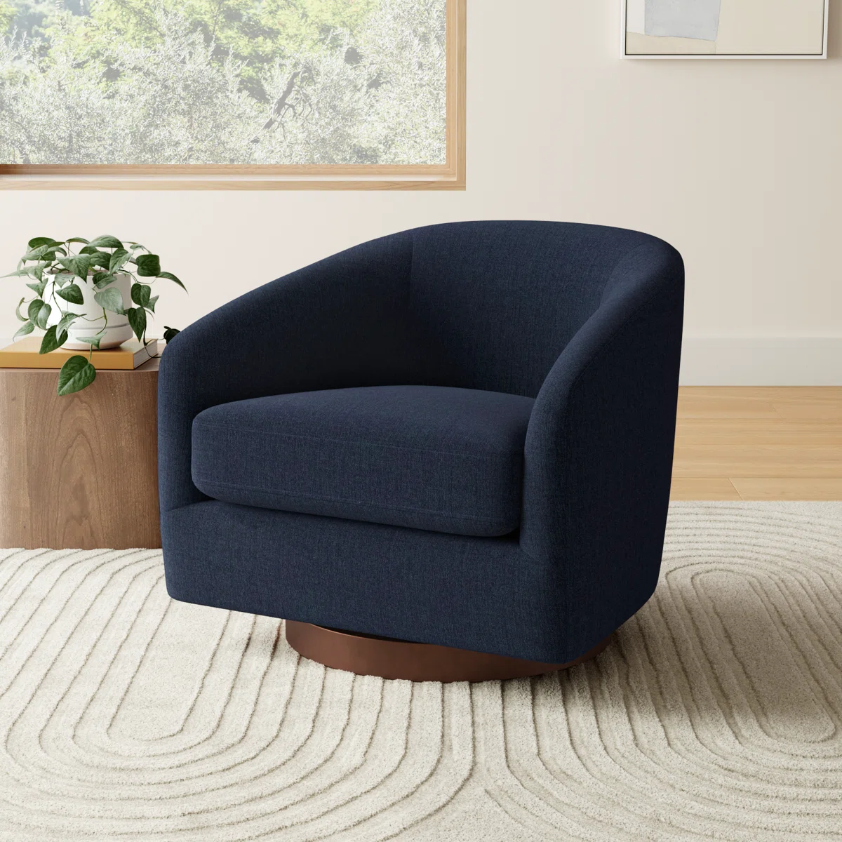 Bring effortless style and functionality to your space with the SpinLuxe Tweed Swivel Barrel Chair. Designed with a smooth 360° swivel feature, this chair offers flexibility and convenience while maintaining a chic, modern look. Its beautifully curved barrel silhouette gently wraps around your body, providing enhanced comfort and ergonomic support.