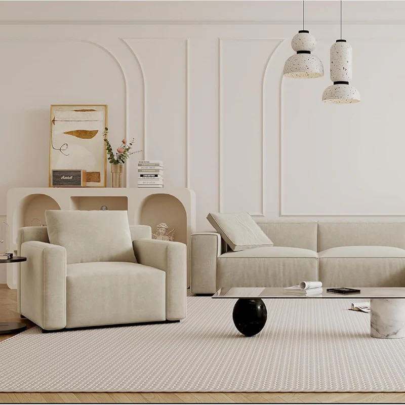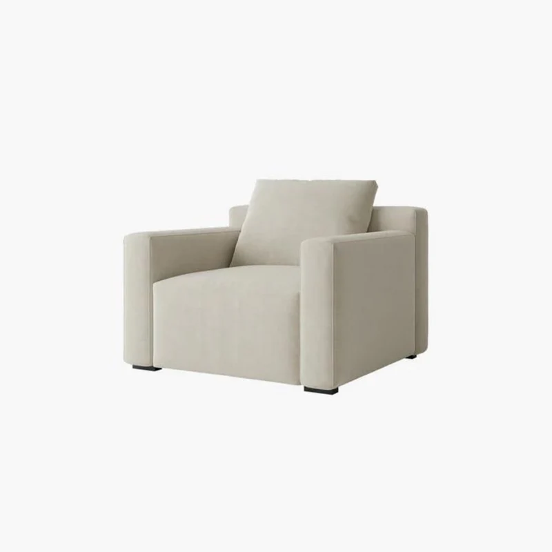 Discover comfort and style with the Suedette Armchair, blending Japanese minimalism with luxurious suedette upholstery. Crafted for modern living spaces, this armchair combines sleek design with plush comfort.