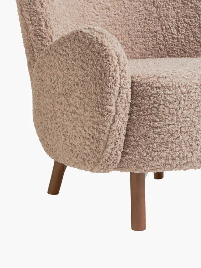 Cover: 100% polyester, weave: Teddy. The high-quality cover is suitable for intensive daily use with a Martindale test rating of 20,000 abrasion cycles. Padding: Foam, density: 32 kg/m³. Legs: Beechwood. Frame: Metal.