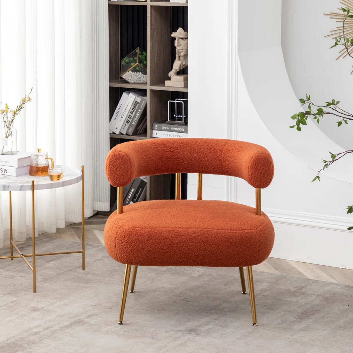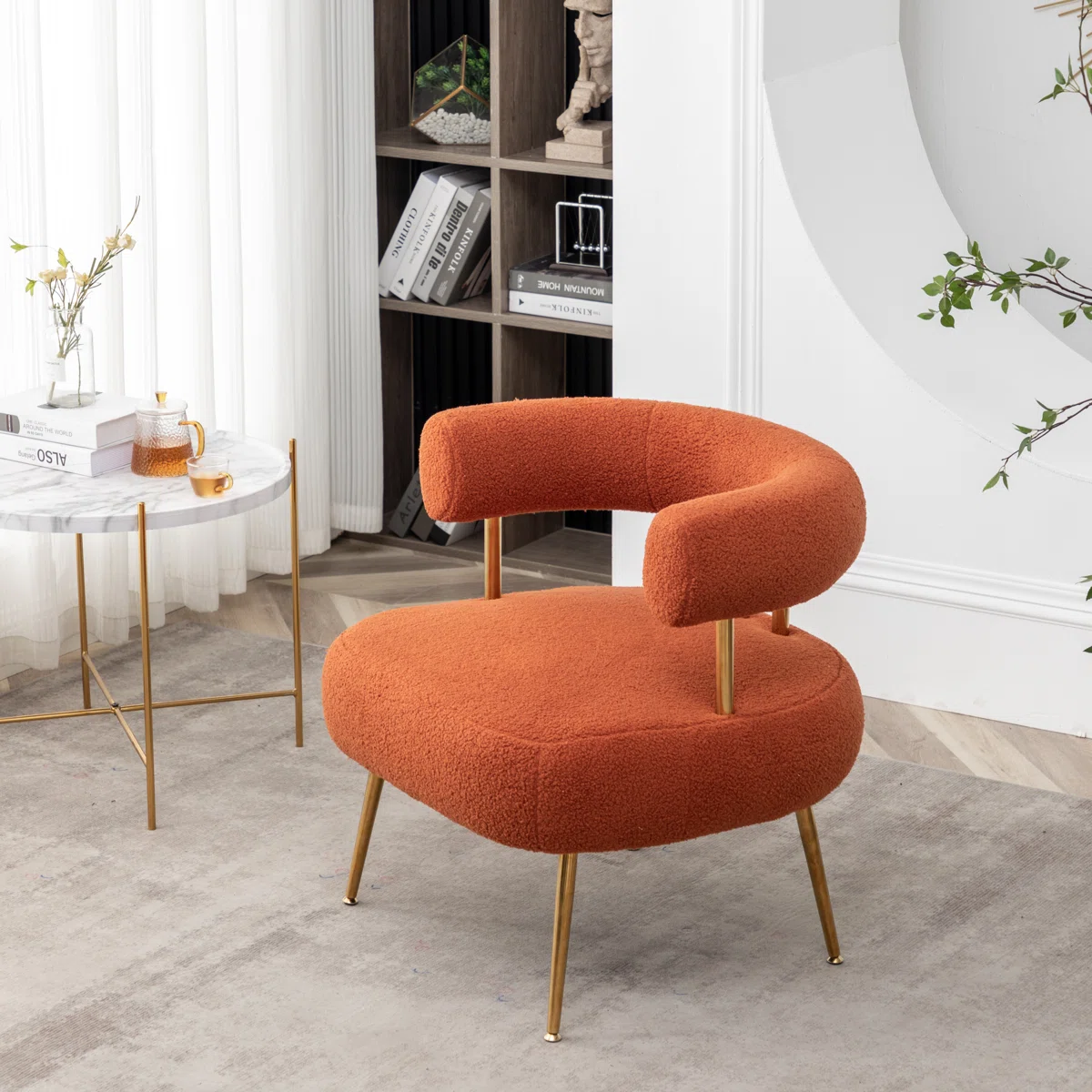 Upholstered in smooth, soft polyester fabric, the chair offers a luxurious feel, while high-density foam cushioning provides excellent support for your back and waist—perfect for relaxing, reading, or working. The sturdy manufactured wood frame ensures durability, while sleek metal legs with gold accents add a contemporary touch of glamour.