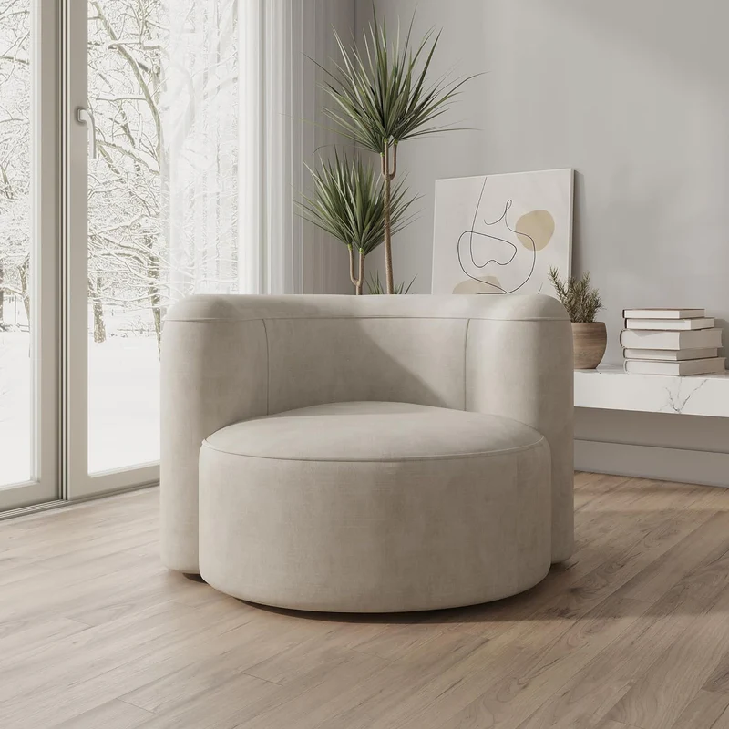 Enhance your living space with the Velvet Armchair. Its plush velvet upholstery adds a touch of elegance and warmth, making it a perfect addition to modern interiors seeking both comfort and style.