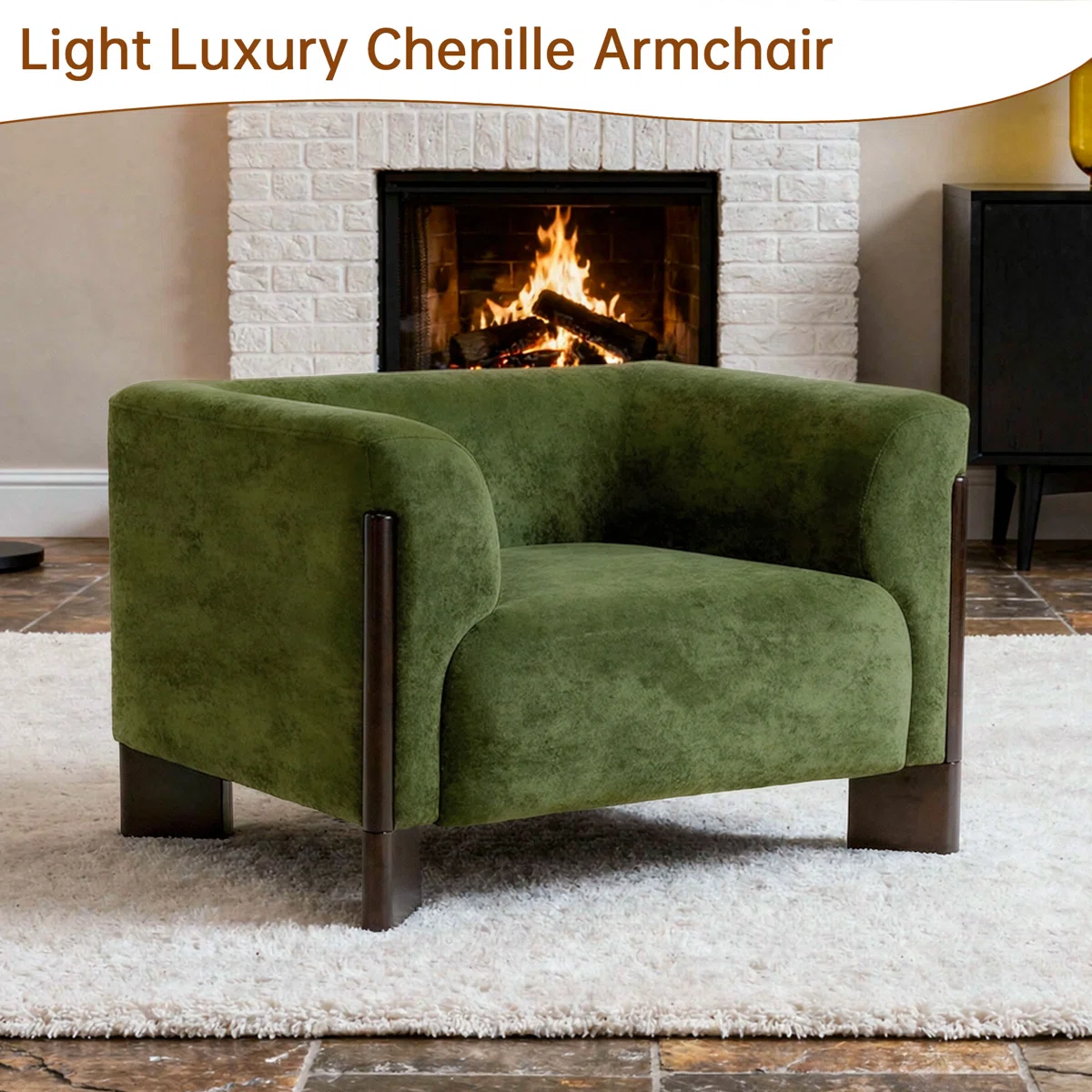 Elevate your living space with the VerdeLuxe Chenille Curved Arm Accent Chair, a refined blend of Nordic-inspired design and luxurious comfort. Upholstered in rich green chenille fabric, this armchair introduces a soft, textured elegance while maintaining durability for everyday use.